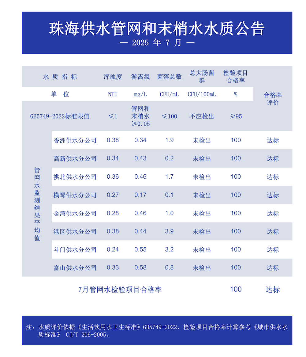 2025年7月珠海供水管網和末梢水水質公告.doc